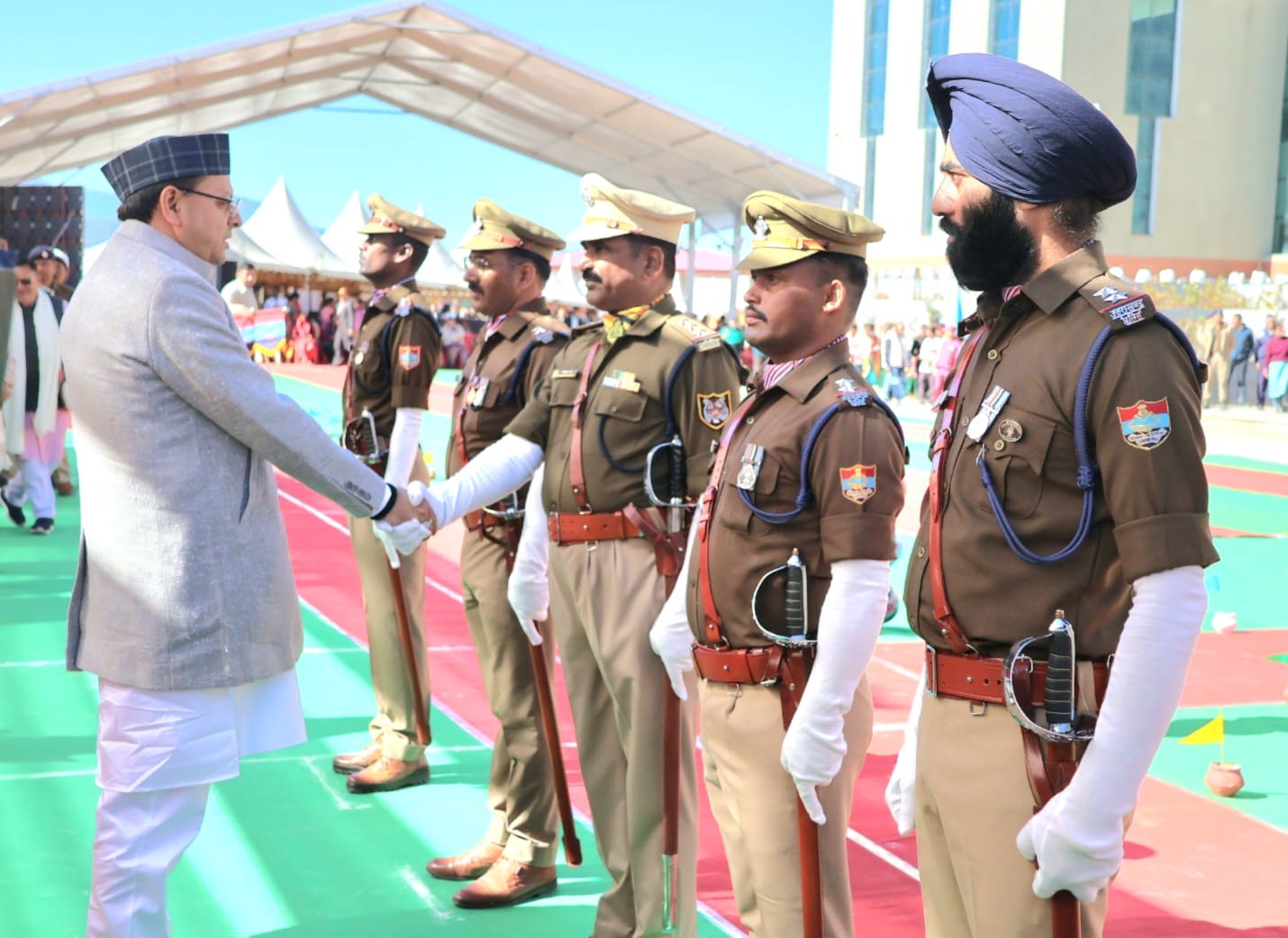 मुख्यमंत्री ने कार्यक्रम स्थल पर विभिन्न विभागों द्वारा लगाए गए स्टॉलों का अवलोकन किया। खेल, शिक्षा, कृषि और अन्य क्षेत्रों में सराहनीय कार्य करने वाले लोगों को भी मुख्यमंत्री ने सम्मानित किया। कार्यक्रम के दौरान आईटीबीपी, आईआरबी, नागरिक पुलिस, होमगार्ड, महिला आरक्षी, नागरिक पुलिस/फायर सर्विस तथा एनसीसी महिला दस्ते ने 46वीं वाहिनी पीएसी के बैंड की धुन पर शानदार रैतिक परेड का प्रदर्शन किया। मुख्यमंत्री ने रैतिक परेड का निरीक्षण भी किया।मुख्यमंत्री पुष्कर सिंह धामी ने राज्यवासियों को उत्तराखण्ड स्थापना की रजत जयंती की बधाई देते हुए देश की रक्षा में सर्वोच्च बलिदान देने वाले वीर जवानों तथा उत्तराखण्ड राज्य के निर्माण के लिए अपना सर्वस्व न्योछावर करने वाले सभी अमर बलिदानियों और राज्य आंदोलनकारियों को भावपूर्ण श्रद्धांजलि अर्पित की। मुख्यमंत्री ने कहा कि प्रधानमंत्री नरेंद्र मोदी ने उत्तराखण्ड के रजत जयंती वर्ष के मुख्य कार्यक्रम में शिरकत कर राज्य का मान बढ़ाने का कार्य किया है। इस दौरान उन्होंने राज्य को 8,200 करोड़ रुपये से अधिक की विकास परियोजनाओं की सौगात भी दी है और राज्य के विकास के लिए लक्ष्य भी निर्धारित किए हैं।