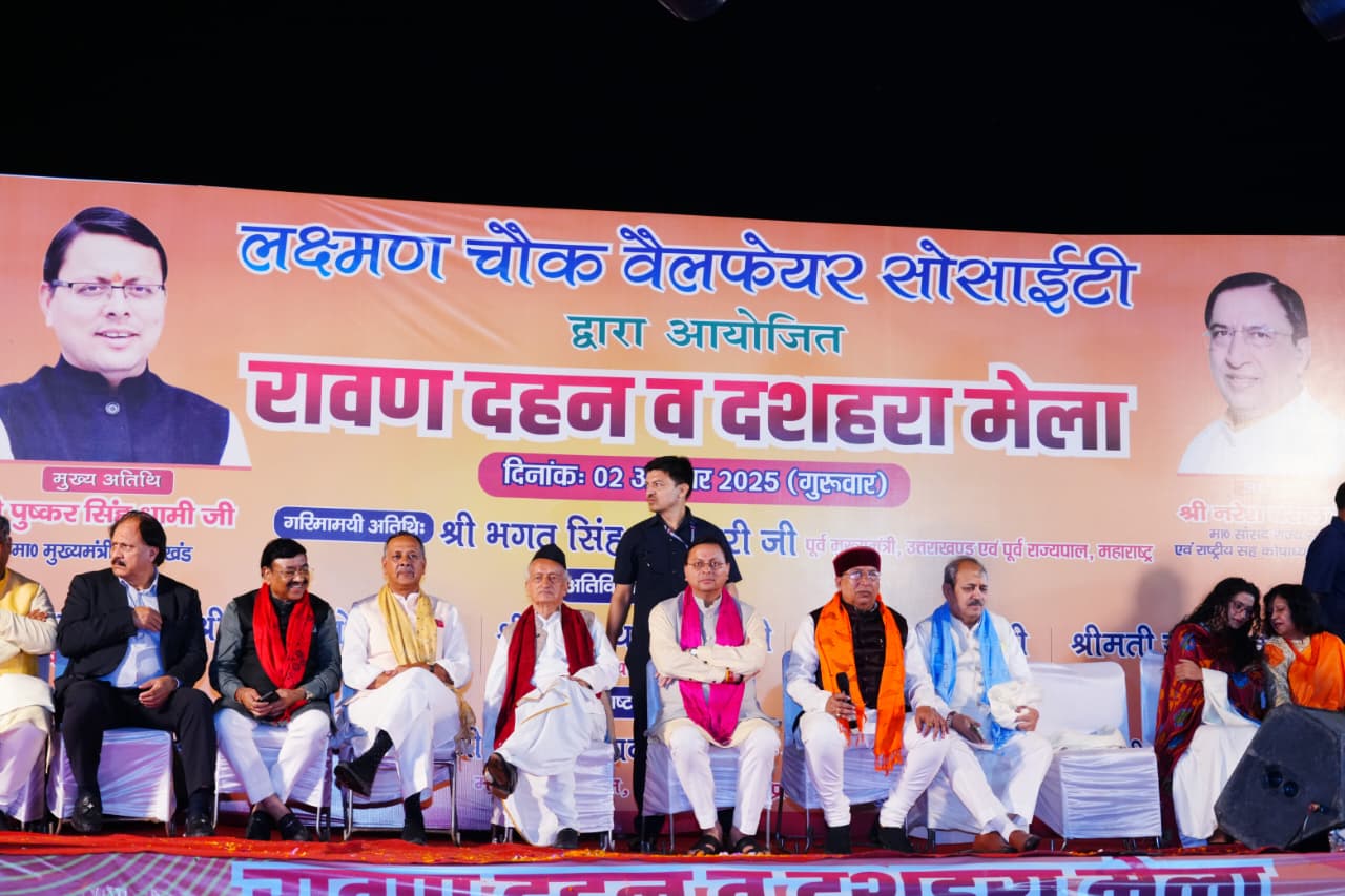 इस अवसर पर समस्त प्रदेशवासियों को विजयादशमी की बधाई एवं शुभकामनाएं देते हुए मुख्यमंत्री पुष्कर सिंह धामी ने कहा कि लक्ष्मण चौक पर हर वर्ष होने वाला यह आयोजन हमारे लिए विशेष है, क्योंकि इस आयोजन के प्रणेता राज्यसभा सांसद ,भारतीय जनता पार्टी के राष्ट्रीय सह-कोषाध्यक्ष नरेश बंसल जी हैं। मैं, उन्हें साधुवाद देता हूं कि उन्होंने इस कार्यक्रम को जनजागरण और सांस्कृतिक चेतना का एक माध्यम बनाया है।