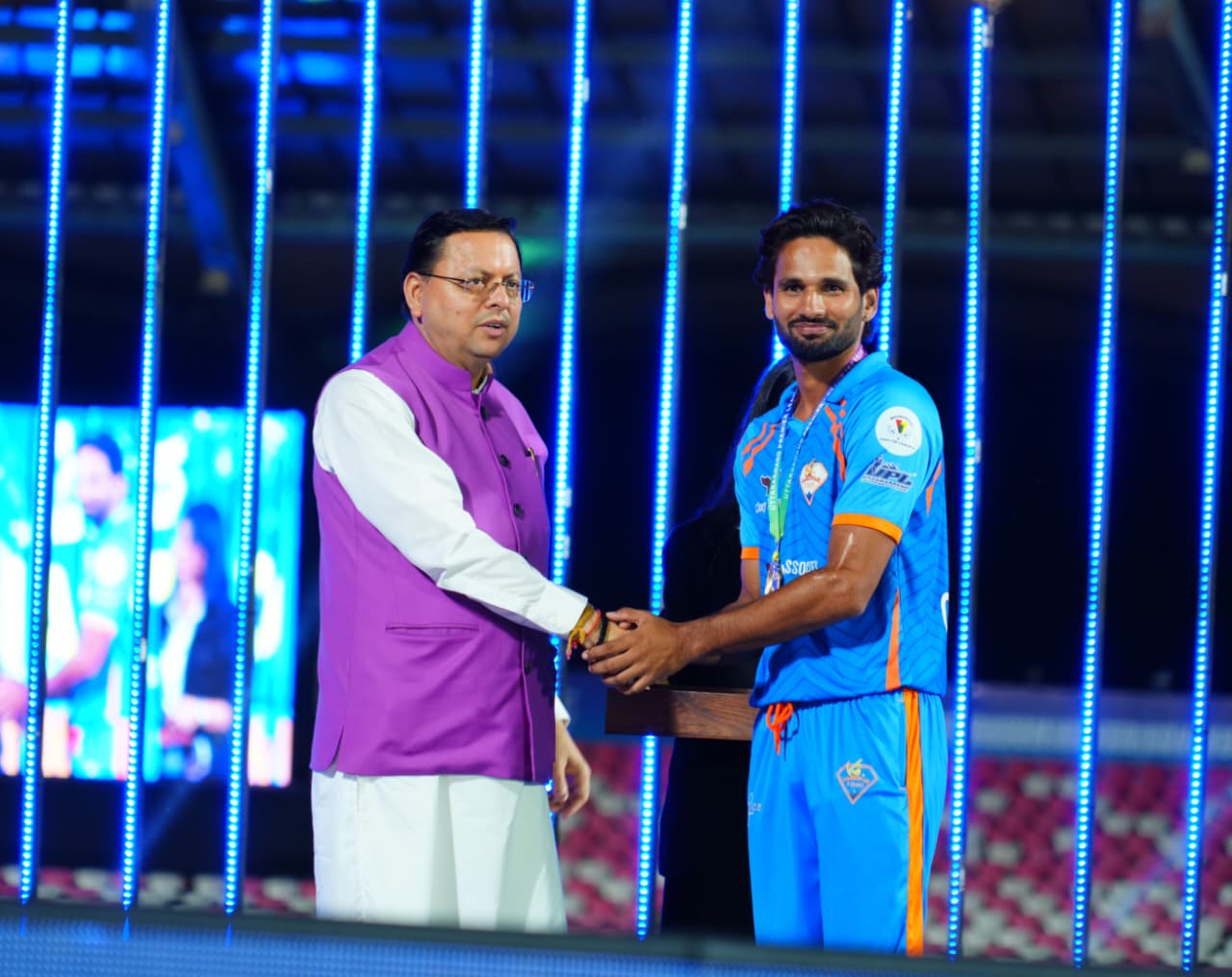 श्रमिक मंत्र,देहरादून। मुख्यमंत्री पुष्कर सिंह धामी ने क्रिकेट एसोसिएशन ऑफ उत्तराखंड की द्वारा राजीव गांधी इंटरनेशनल स्टेडियम रायपुर देहरादून में आयोजित उत्तराखंड प्रीमियर लीग 2025 के समापन समारोह में प्रतिभाग किया | हरिद्वार एलमास उत्तराखंड प्रीमियर लीग 2025 चैंपियनशिप का विजेता रहा |