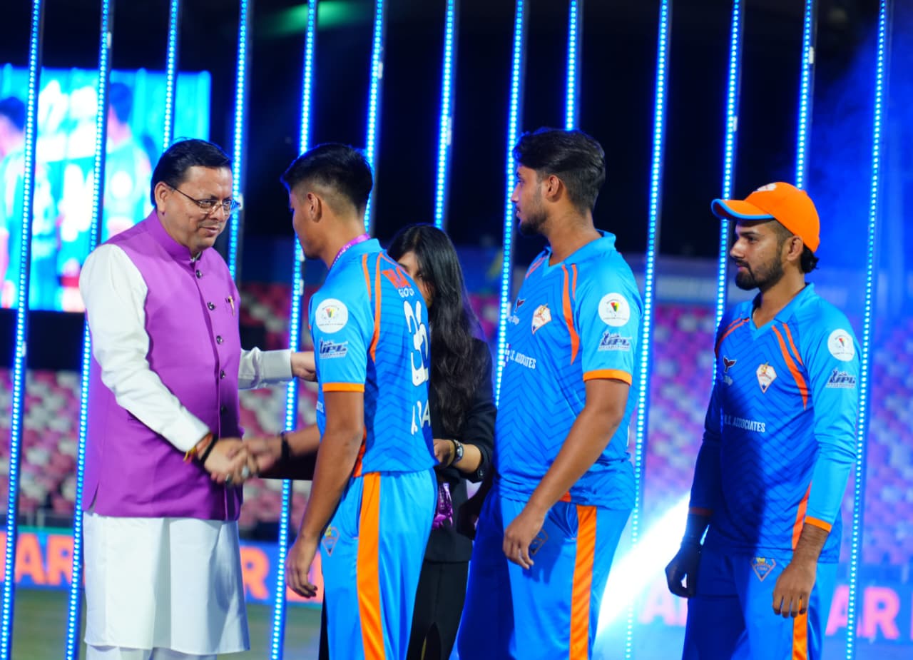 श्रमिक मंत्र,देहरादून। मुख्यमंत्री पुष्कर सिंह धामी ने क्रिकेट एसोसिएशन ऑफ उत्तराखंड की द्वारा राजीव गांधी इंटरनेशनल स्टेडियम रायपुर देहरादून में आयोजित उत्तराखंड प्रीमियर लीग 2025 के समापन समारोह में प्रतिभाग किया | हरिद्वार एलमास उत्तराखंड प्रीमियर लीग 2025 चैंपियनशिप का विजेता रहा |