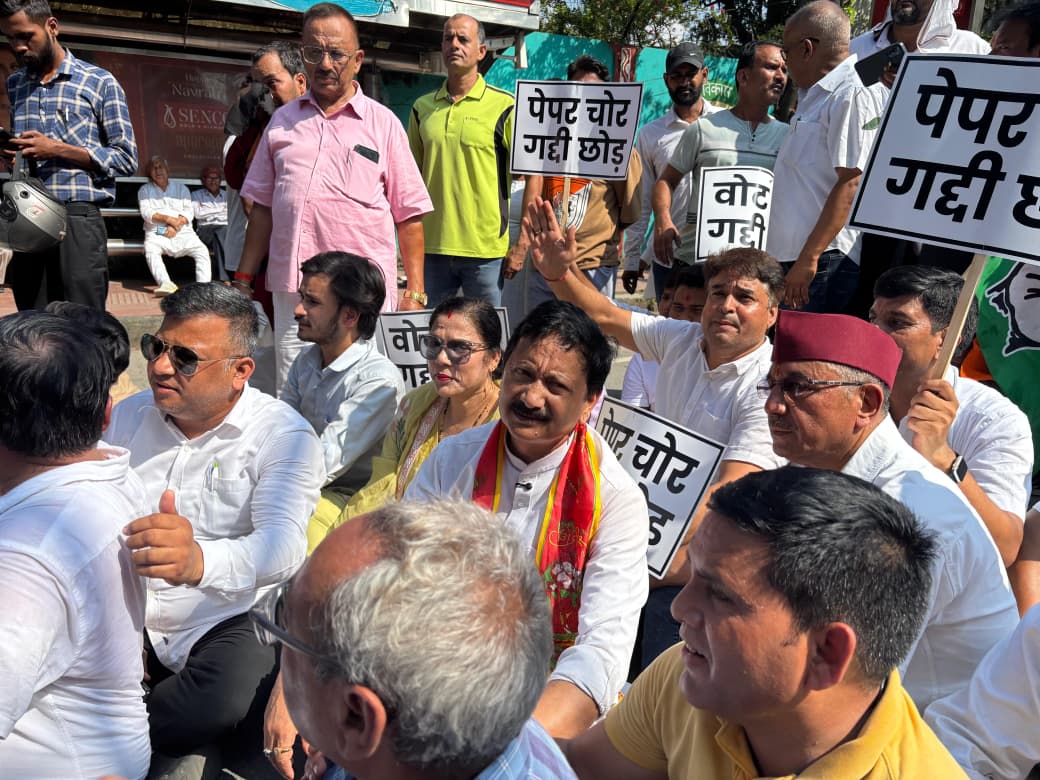 पार्टी कार्यकर्ताओं को संबोधित करते हुए प्रदेश अध्यक्ष करण माहरा ने धामी सरकार पर राज्य के नौजवानों व बेरोजगारों को धोखा देने का आरोप लगाते हुए कहा कि प्रदेश का नौजवान जो पिछले साढ़े आठ सालों से रोजगार की तलाश में दर दर भटक रहा है आज इस बात से निराश हताश और आक्रोशित है कि प्रदेश में एक तो सारी भर्तियां बंद हैं और जो कुछ थोड़ी बहुत भर्तियां निकलती हैं उनकी परीक्षा के पेपर खुले आम नीलाम हो जाते हैं और नीलाम करने वाले कहीं ना कहीं भाजपा से जुड़े लोग होते हैं चाहे वो हाकम सिंह हो या वो संजय धारीवाल या धर्मेंद्र सिंह चौहान हों। करण माहरा ने कहा कि विगत इकीस सितंबर को यूके ट्रिपल एससी परीक्षा पेपर लीक के बाद से कांग्रेस लगातार आंदोलन कर रही है और हमारी साफ साफ मांग है कि इस पेपर लीक की जांच हाई कोर्ट के सिटिंग जज की निगरानी में सीबीआई से करवाई जाए क्योंकि केवल सीबीआई जांच काफी नहीं उसकी निगरानी होनी चाहिए।