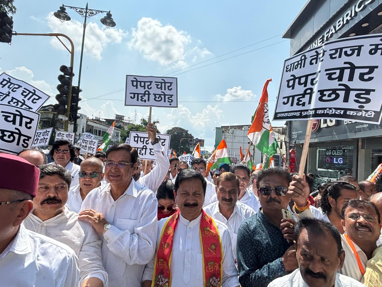 यूके ट्रिपल एससी अध्यक्ष गणेश मर्तोलिया की बर्खास्तगी व लीक पेपर परीक्षा को कैंसिल कर नई परीक्षा तिथि घोषित करने की मांग को लेकर हुआ जबरदस्त प्रदर्शनमांगें पूरी होने तक जारी रहेगा कांग्रेस का आंदोलन