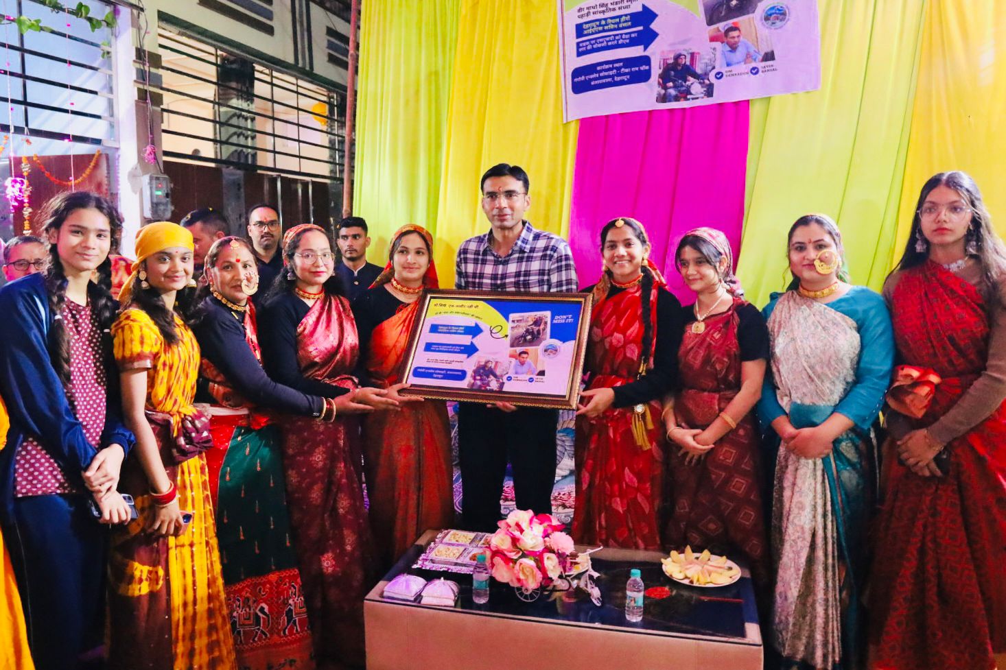 डीएम को सम्मानित करने के लिए लोक परंपरा और वेशभूषा में महिलाओं की अपने घरों से निकलने की तैयारी की सूचना डीएम को लगी तो उन्होंने महोदय भाव से महिलाओं को परेशानी ना हो वही पहुंचने का संदेश भेजा