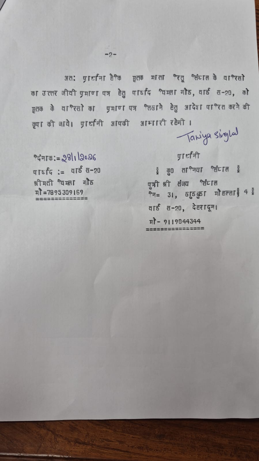 खुड़बुड़ा निवासी तान्या सिंघल ने जिलाधिकारी को प्रार्थना-पत्र प्रस्तुत कर अवगत कराया कि उनकी माता का निधन दिसंबर 2022 में हो गया था। नगर निगम के संपत्ति रजिस्टर में अपना नाम दर्ज कराने हेतु उन्हें उत्तरजीवी प्रमाण पत्र की आवश्यकता थी। उन्होंने बताया कि वह लंबे समय से परेशान थीं और विभिन्न स्तरों पर प्रयास करने के बावजूद समाधान नहीं हो पा रहा था।