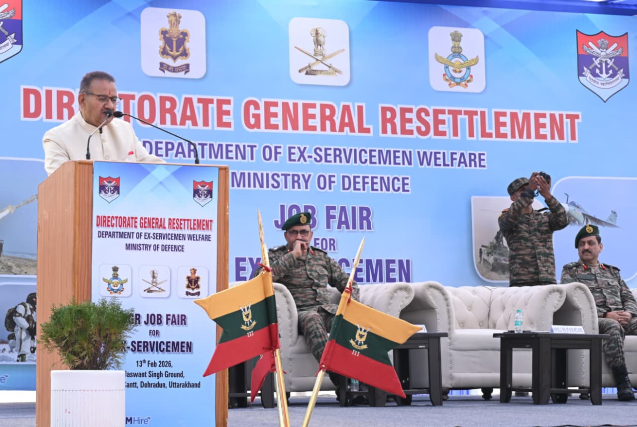 देहरादून में रक्षा मंत्रालय द्वारा आयोजित पूर्व सैनिक रोजगार मेले का रिबन काटकर शुभारंभ करते सैनिक कल्याण मंत्री गणेश जोशी