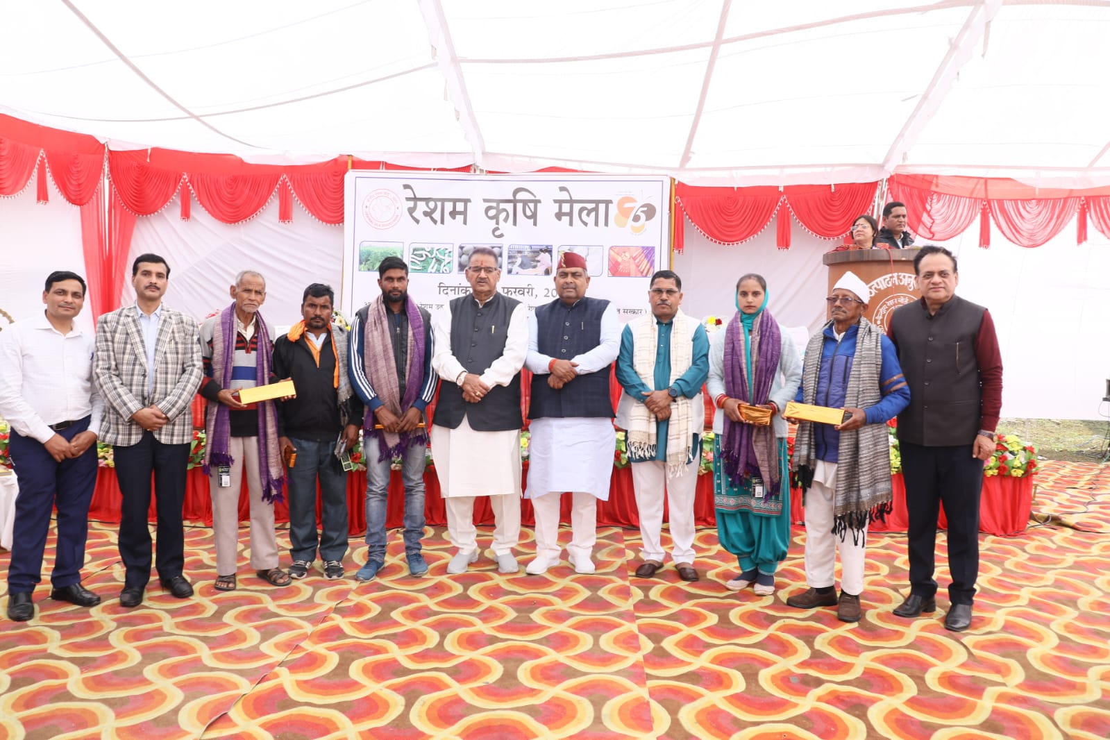 उन्होंने बताया कि रेशम उत्पादन को बढ़ावा देने के लिए राज्य सरकार तथा केन्द्रीय रेशम बोर्ड, भारत सरकार के माध्यम से संचालित केंद्र पोषित योजनाओं के अंतर्गत रेशम कीट पालकों को वृक्षारोपण, कीट पालन भवन निर्माण एवं उपकरणों की सुविधा उपलब्ध कराई जा रही है। साथ ही प्रशिक्षण कार्यक्रमों के माध्यम से किसानों की दक्षता और क्षमता में वृद्धि की जा रही है, जिससे कोया एवं वस्त्र उत्पादन बढ़ेगा और किसानों की आय में वृद्धि सुनिश्चित होगी।