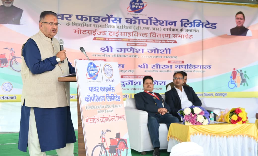 कैबिनेट मंत्री गणेश जोशी ने इस सराहनीय पहल के लिए पावर फाइनेंस कॉर्पोरेशन लिमिटेड के अधिकारियों को शुभकामनाएं दीं। उन्होंने कहा कि संस्था द्वारा अपने निगमित सामाजिक दायित्व के अंतर्गत लगभग 1 करोड़ रुपए की धनराशि इस उद्देश्य के लिए उपलब्ध कराई गई है। उन्होंने कहा कि प्रधानमंत्री मोदी का आभार जताते हुए कहा कि विकलांग से दिव्यांग जैसे सम्मान जनक नाम प्रधानमंत्री मोदी ने दिया। उन्होंने कहा प्रधानमंत्री के नेतृत्व में दिव्यांगजनों एवं वरिष्ठ नागरिकों के उत्थान हेतु निरंतर नई योजनाएं चलाई जा रही हैं, जिनका लक्ष्य उनके जीवन को अधिक सुलभ, सम्मानजनक और आत्मनिर्भर बनाना है।