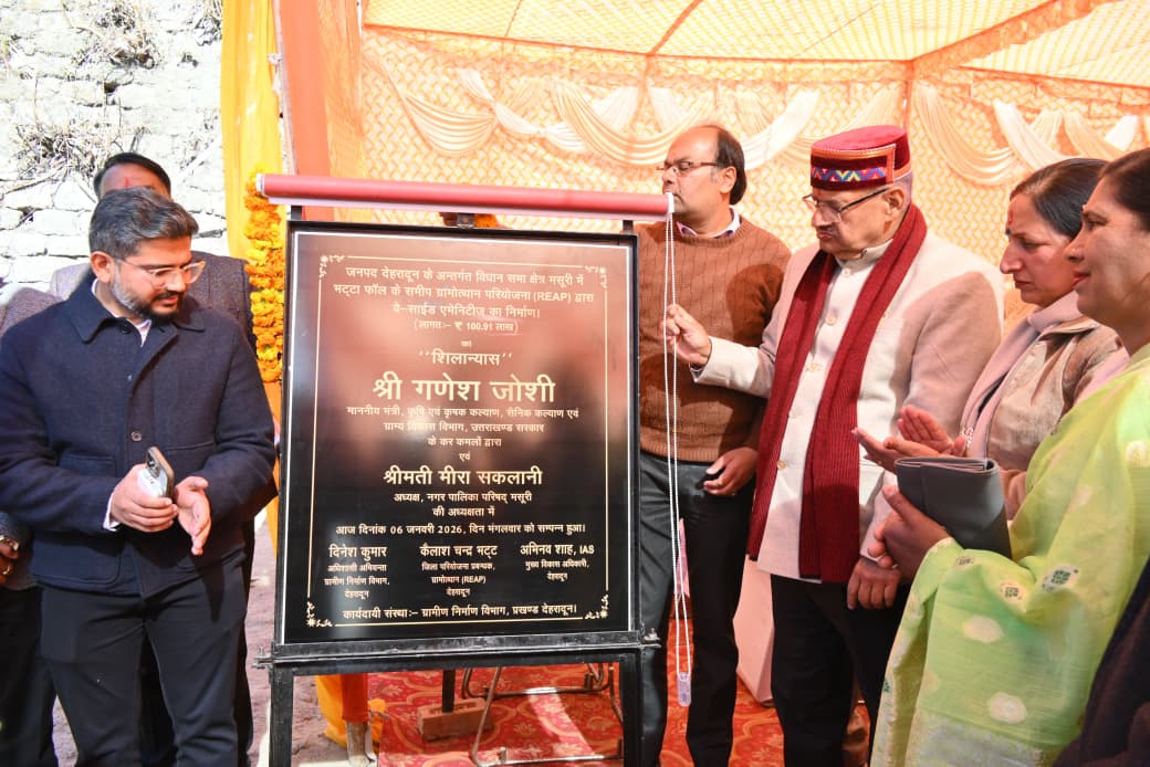 श्रमिक मंत्र,देहरादून। ग्राम्य विकास मंत्री गणेश जोशी ने जनपद देहरादून के मसूरी विधानसभा क्षेत्र अंतर्गत भट्टा फॉल के समीप ग्रामोत्थान परियोजना (REAP) के अंतर्गत ₹100.91 लाख की लागत के वे-साइड एमेनिटीज निर्माण कार्य का विधिवत शिलान्यास किया।