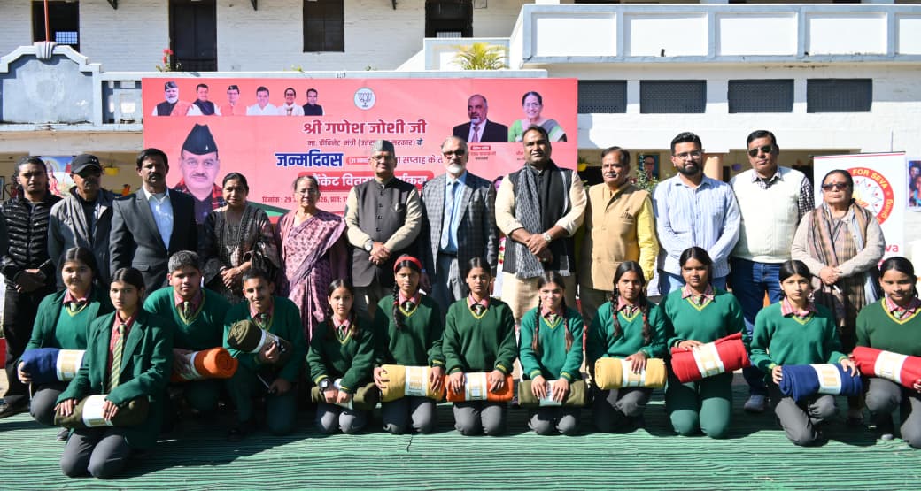 सेवा सप्ताह के तहत कैबिनेट मंत्री गणेश जोशी ने छात्र–छात्राओं को ब्लैंकेट किए वितरित, बच्चों ने एक स्वर में बोला *थैंक्यू मंत्री जी