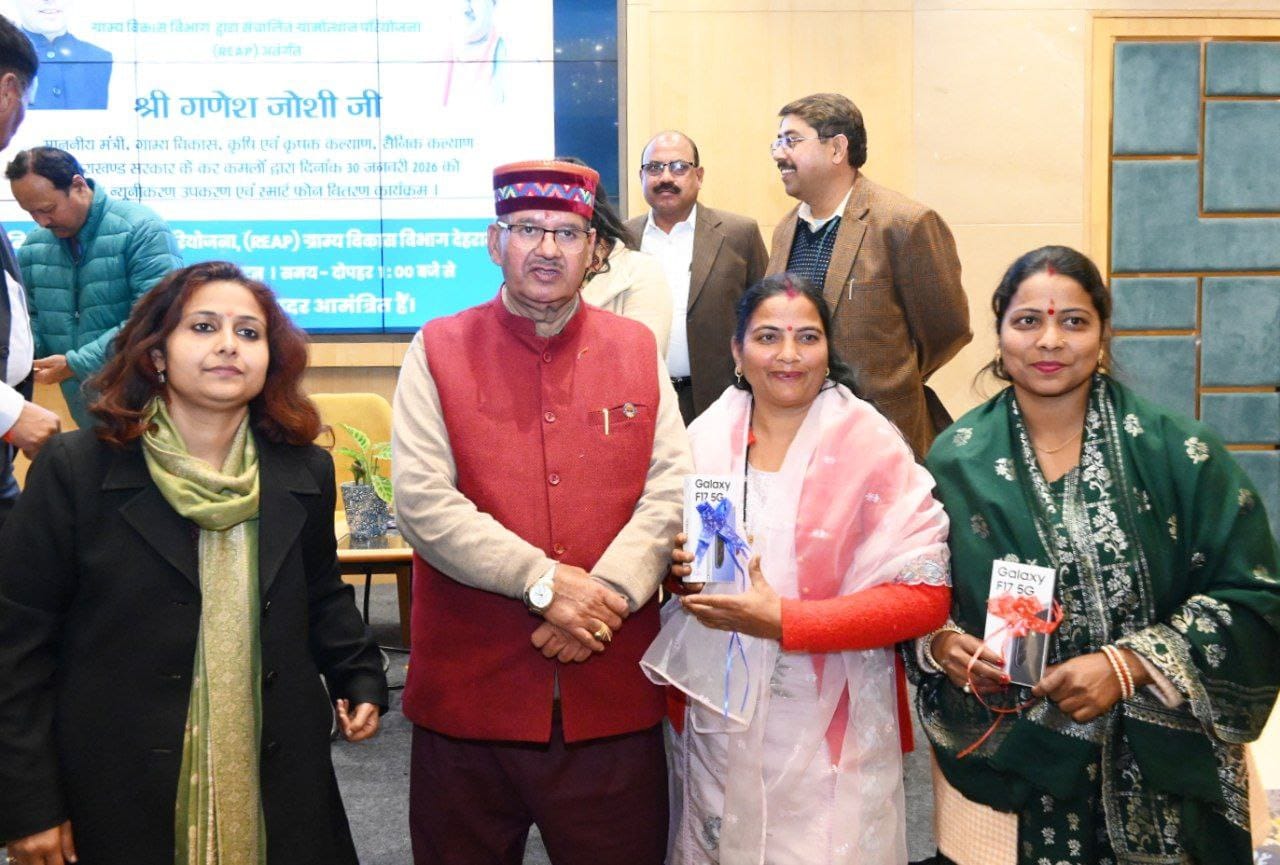 उन्होंने कहा कि आज वितरित किए गए उपकरण और स्मार्टफोन इस यात्रा को गति देने वाले सशक्त साधन हैं। ग्राम्य विकास मंत्री गणेश जोशी ने कहा कि मुख्यमंत्री पुष्कर सिंह धामी के नेतृत्व में राज्य सरकार समूहों के माध्यम से महिलाओं को सशक्त बनाने और आजीविका संवर्धन के लिए निरंतर कार्य कर रही है। उन्होंने बताया कि अब तक प्रदेश में 1.72 लाख महिलाएं ‘लखपति दीदी’ बन चुकी है।
