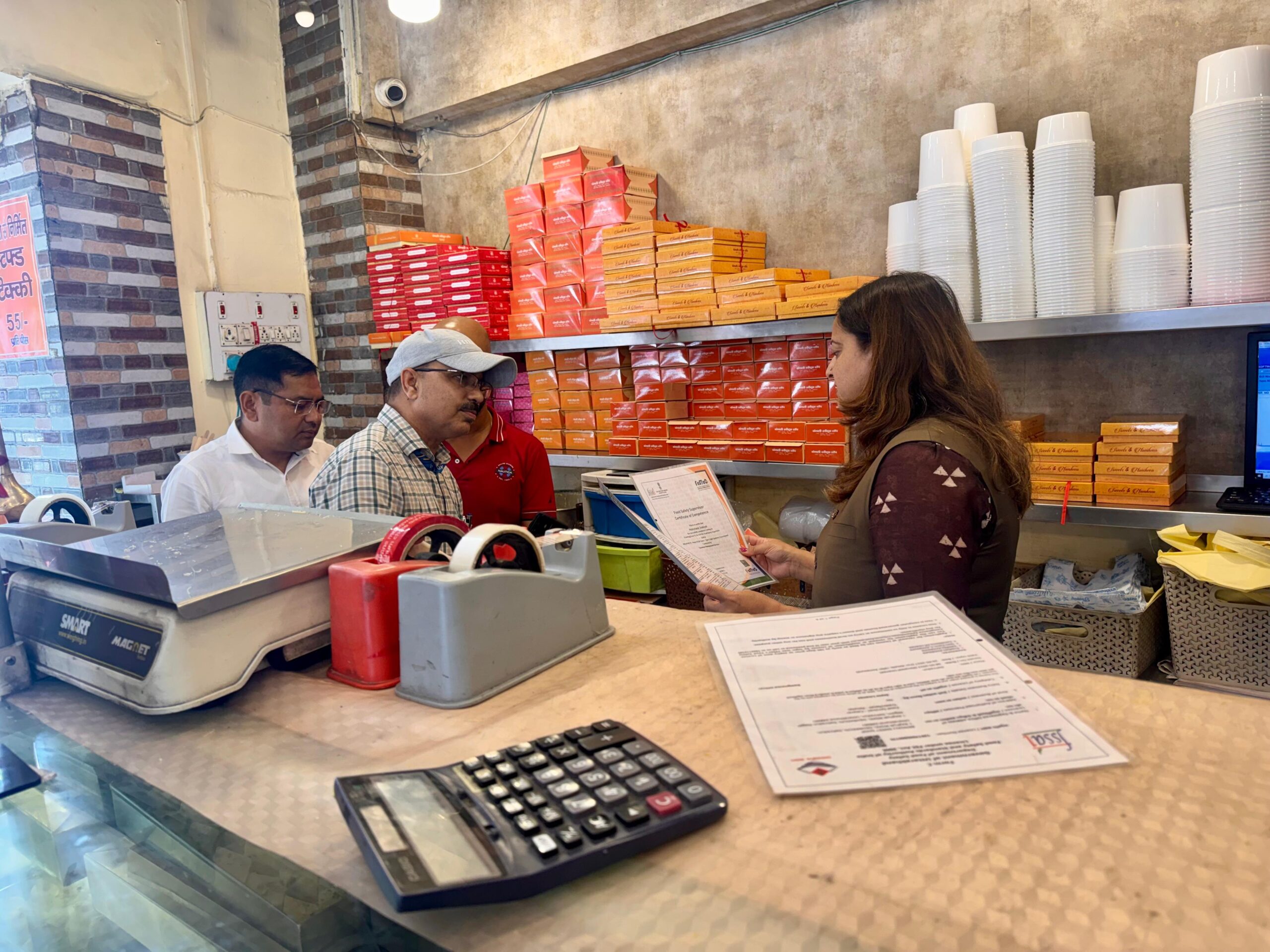 कुमार स्वीट शॉप, घंटाघर, देहरादून – निरीक्षण के दौरान पूछताछ की गयी और किचन, रेस्टोरेन्ट व मिठाई काउंटर का निरीक्षण किया गया। बताया गया की खाद्य सामग्रियों में इस्तेमाल होने वाले तेल को एक ही बार इस्तेमाल किया जाता है। किचन का निरीक्षण किया गया और मिठाइयों की गुणवत्ता भी जांची गयी। बताया गया कि सभी सामग्रियों का निर्माण वे अपने ही शॉप में करते हैं। अंत में निरीक्षण टीम द्वारा मलाई रोल मिठाई की जांच हेतु नमूना लिया गया। टीम द्वारा प्रतिष्ठान में और अधिक साफ सफाई/ हाइजीन हेतु कार्य करने के निर्देश दिये गए।बंगाली स्वीट, घंटाघर, देहरादून- निरीक्षण के दौरान पूछताछ की गयी और सम्पूर्ण जानकारीली गयी। बताया गया कि उनके यहां सिर्फ मिठाईयों का विक्रम होता है और टिक्की का निर्माण वे अपने ही शीप में करते हैं। लाइसेंस की जांच की गयी जो मानकों के अनुरूप पाया गया। अंत में निरीक्षण टीम द्वारा मलाई चमचम मिठाई को जांच हेतु लिया गया और सफाई/हाइजीन हेतु कुछ आवश्यक दिशा-निर्देश दिये गए तथा त्योहारी सीजन में अधिक सावधानी रखने के निर्देश दिये गए।