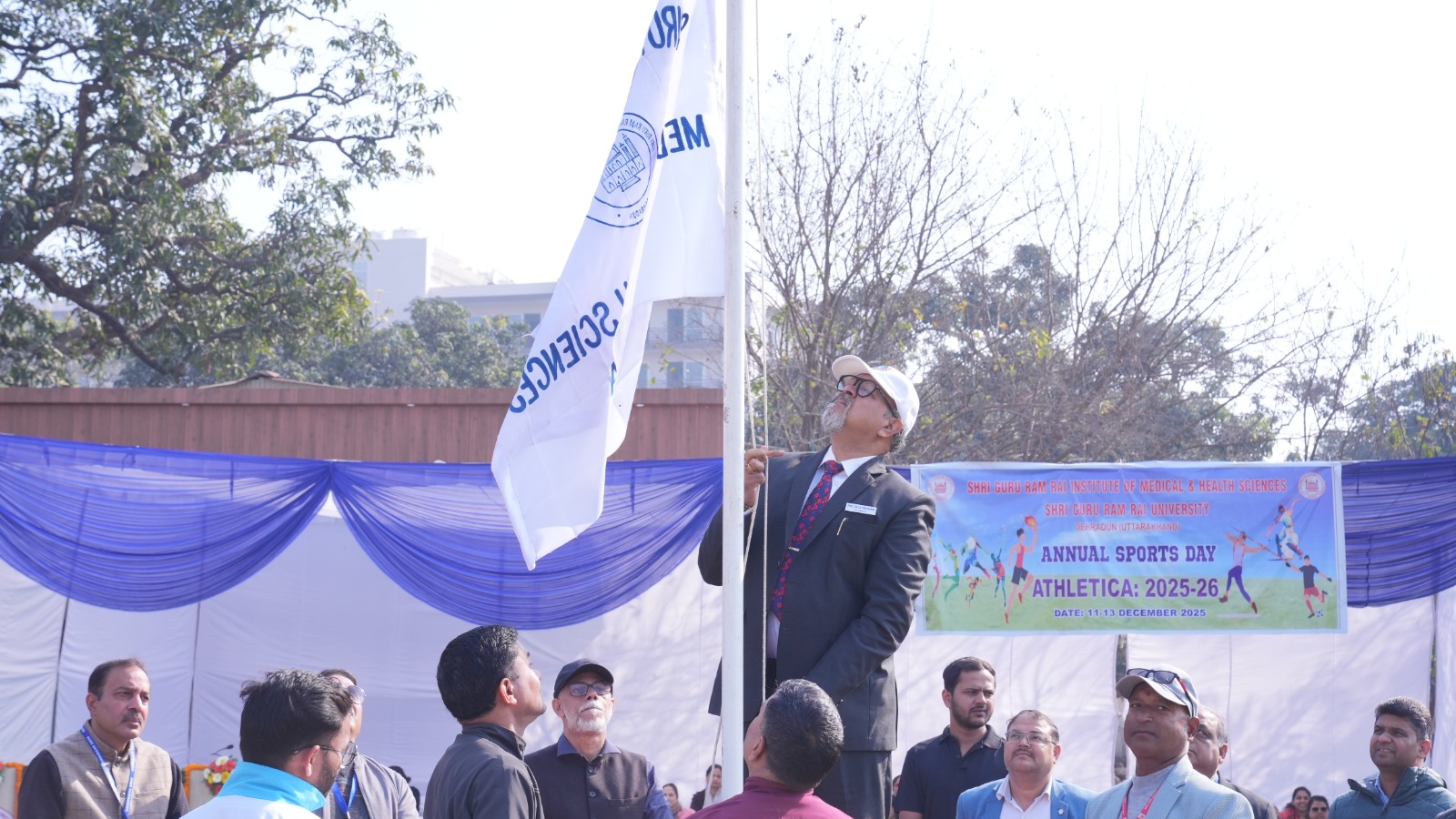 इस अवसर पर श्री गुरु राम राय विश्वविद्यालय के माननीय प्रेसीडेंट एवम् श्री गुरु राम राय इंस्टीट्यूट आफ मेडिकल एण्ड हैल्थ साइंसेज़ के चेयरमैन श्रीमहंत देवेन्द्र दास जी महाराज ने सभी प्रतिभागी मेडिकल छात्र-छात्राओं को एटलिटिका-2025 के आयोजन पर शुभकामनाएं प्रेषित कीं। तीन दिवसीय एटलिटिका-2025 का आयोजन 11 दिसंबर से 13 दिसंबर 2025 तक किया जा रहा है, जिसमें मेडिकल छात्र-छात्राएं विभिन्न ट्रैक एवं फील्ड स्पर्धाओं में अपनी प्रतिभा का प्रदर्शन करेंगे। इस भव्य आयोजन का शुभारंभ श्री गुरु राम राय विश्वविद्यालय के माननीय कुलपति मुख्य अतिथि प्रो. डॉ. प्रथापन के. पिल्लई ने मशाल प्रज्वलित कर किया।