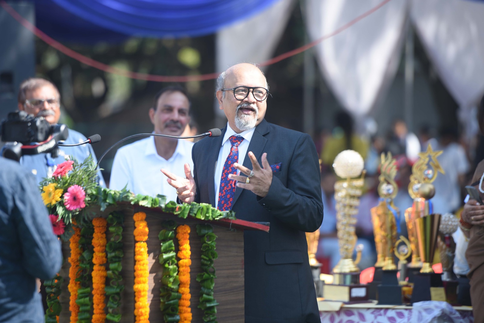 मुख्य अतिथि प्रो. (डॉ.) प्रथापन के. पिल्लई, प्रभारी कुलपति एवं माननीय प्रेसीडेंट के सलाहकार ने समारोह का शुभारंभ करते हुए कहा कि खेल न केवल शारीरिक दक्षता का प्रमाण होते हैं, बल्कि यह अनुशासन, धैर्य और नेतृत्व जैसे मूल्यों की भी शिक्षा देते हैं। उन्होंने विजेता खिलाड़ियों को बधाई देते हुए कहा कि जैसे ट्रैक पर धावक अपनी सीमाओं को पार करता है, वैसे ही जीवन में निरंतर अभ्यास और सकारात्मक सोच से कोई भी लक्ष्य हासिल किया जा सकता है।