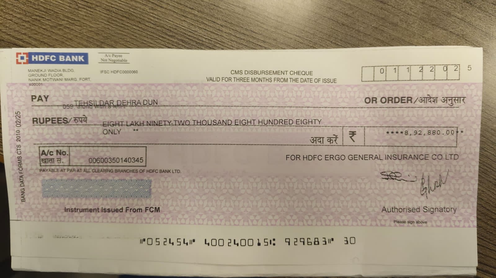 श्रमिक मंत्र, देहरादून। एचडीएफसी आर्गो इंश्योरेंस लिमिटेड जिला प्रशासन के नाम 8,92000 का चेक जमा कराया गया है। जिलाधिकारी सविन बंसल के सख्त रुख से जहां उपभोक्ताओं से ऋण बीमा धोखाधड़ी करने वाली कंपनियां बैक फुट पर है। वहीं जिला प्रशासन के कड़े और निडर फैसलों से असहाय प्रताड़ित महिला, बुजुर्ग, बच्चों को न्यायमिल रहा मिल रहा है। जिला प्रशासन ने नव वर्षीय बालिका की विधवा मां सुप्रिया को प्रताड़ित करने वाली बीमा कंपनी एचडीएफसी आरगो का इलाज कर दिया, बीमा कंपनी के सिर पर कुर्की की तलवार लटक रही है।