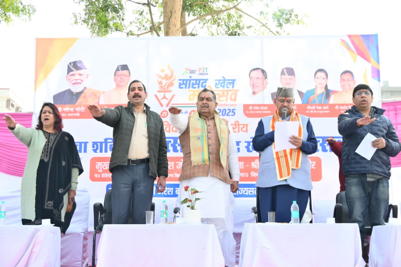 श्रमिक मंत्र, देहरादून। कैबिनेट मंत्री गणेश जोशी ने आज सहसपुर स्थित मिनी स्टेडियम शंकरपुर में खेल, शिक्षा एवं युवा कल्याण विभाग देहरादून द्वारा आयोजित सांसद खेल महोत्सव 2025 (विकासखण्ड स्तरीय) कार्यक्रम में बतौर मुख्य अतिथि प्रतिभाग किया। कार्यक्रम के मुख्य अतिथि कैबिनेट मंत्री गणेश जोशी ने बच्चों के साथ कबड्डी खेलकर महोत्सव का शुभारम्भ किया।