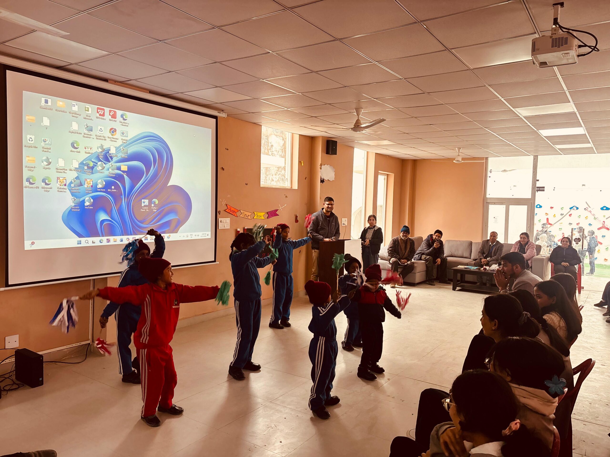 इसी क्रम में IMS यूनिसन यूनिवर्सिटी के 12 छात्र-छात्राओं ने डॉ. सुरेन्द्र यादव (सहायक प्रोफेसर) के नेतृत्व में इंटेंसिव केयर सेंटर का भ्रमण किया और बच्चों के साथ संवाद स्थापित किया। इस अवसर पर ICC के बच्चों ने अतिथियों का स्वयं के हाथों से बनाए गए स्वागत कार्ड एवं सुंदर स्वागत नृत्य के माध्यम से आत्मीय स्वागत किया। इस सहभागिता से बच्चों में रचनात्मकता, आत्मविश्वास, प्रस्तुति कौशल एवं टीमवर्क के सकारात्मक विकास की झलक स्पष्ट रूप से देखने को मिली। यह पहल न केवल बच्चों के सर्वांगीण विकास को प्रोत्साहित कर रही है, बल्कि समाज और शैक्षणिक संस्थानों के बीच संवेदनशील साझेदारी का भी सशक्त उदाहरण प्रस्तुत कर रही है।