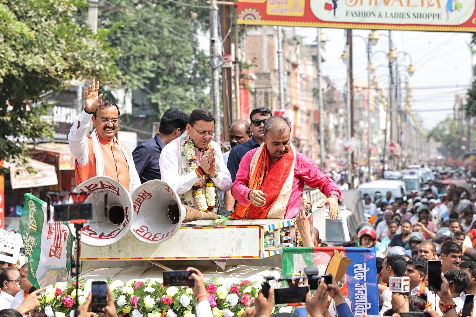 सिवान बिहार में सीएम धामी का भाजपा प्रत्याशी मंगल पांडेय के पक्ष में रोड शो