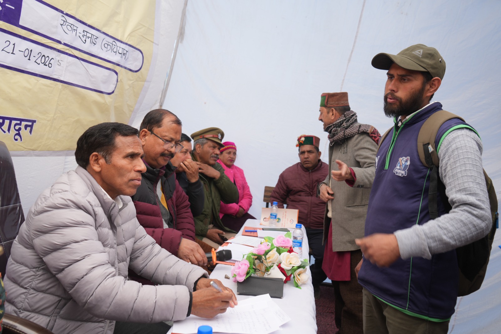 श्रमिक मंत्र, देहरादून। प्रदेश सरकार की महत्वाकांक्षी पहल ‘जन-जन की सरकार, जन-जन के द्वार, प्रशासन गांव की ओर’ अभियान के तहत बुधवार को चकराता ब्लॉक की सुदूरवर्ती क्षेत्र राजकीय इंटर कॉलेज कथियान में उप जिलाधिकारी प्रेम लाल की अध्यक्षता में जनसेवा शिविर का आयोजन किया गया। शिविर में ग्रामीणों की समस्याओं का मौके पर निस्तारण किया गया तथा विभागीय योजनाओं के माध्यम से 1086 से अधिक लोगों को लाभान्वित किया गया।